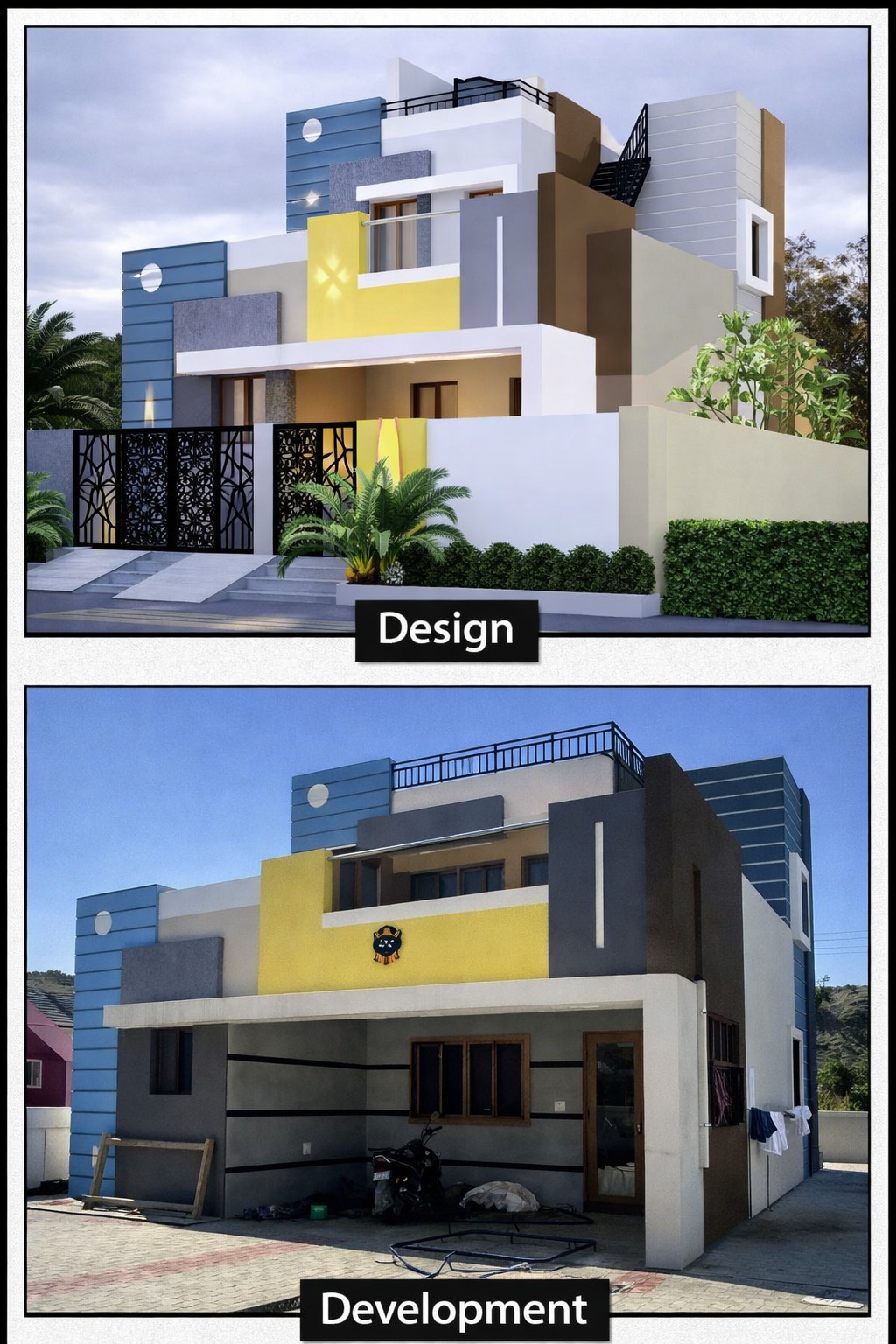 Realistic exterior elevation designs that showcase structure, materials, textures, and architectural style before construction begins.